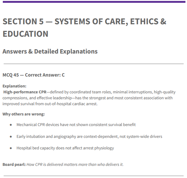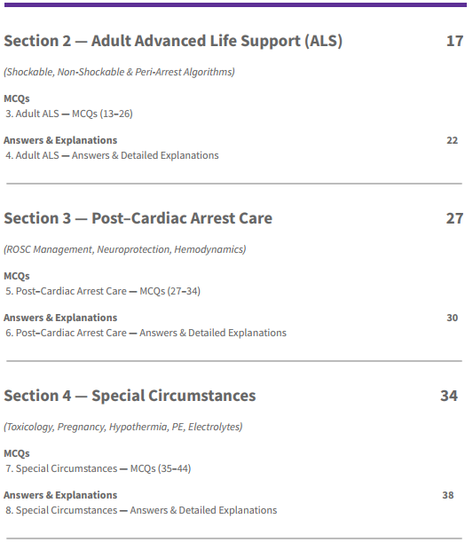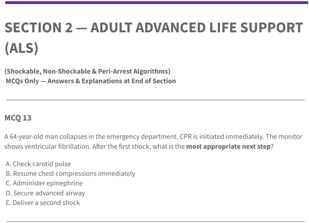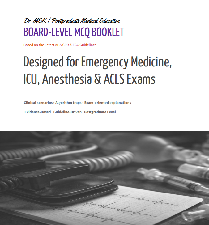 You’ll get 50 board-level resuscitation MCQs designed for postgraduate exams and real-world ACLS decision-making.